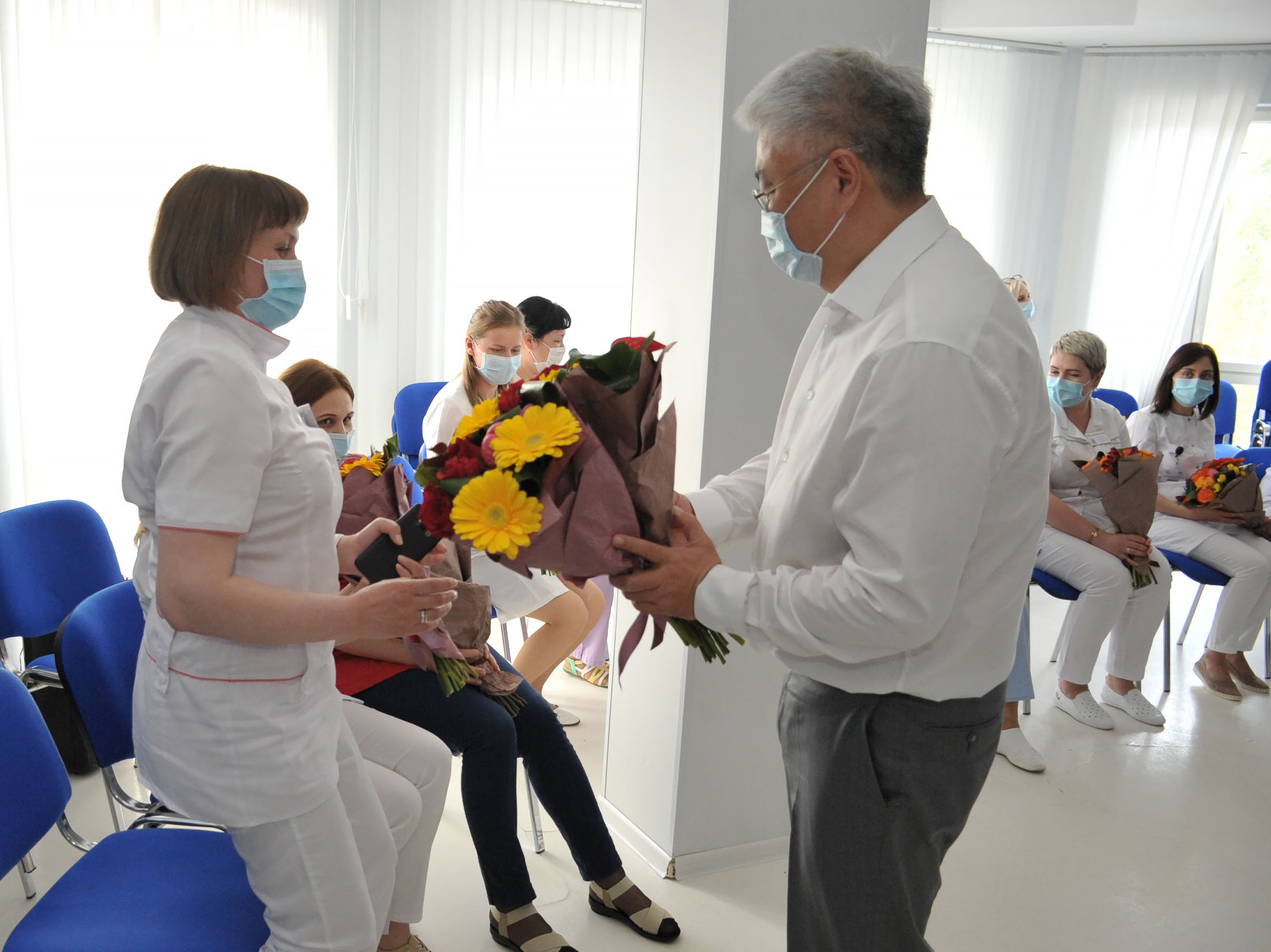 Главный врач Центра профессиональной патологии, депутат Думы Югры, региональный координатор партпроекта «Здоровое будущее» Николай Ташланов встретился с медицинскими сестрами Центра в их профессиональный праздник.Поздравляя сестёр милосердия парламентарий отметил, что их профессия является неотъемлемой частью системы здравоохранения, занимает важное место в лечебном процессе, в немалой степени определяя конечный результат – выздоровление пациентов. Поздравляя сестринский коллектив Центра профпатологии с профессиональным праздником, Николай Ташланов отметил, что работа медперсонала среднего звена многогранна, требует умения принимать решения, осваивать новые технологии, самосовершенствоваться.