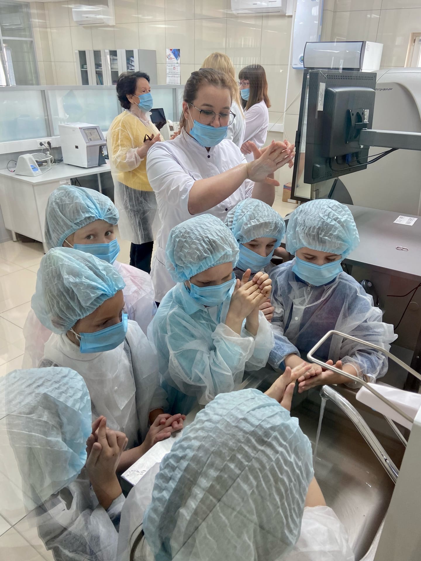 Медицинские специалисты рассказали о «злых» бактериях и опасностях, которые они представляют организму. Особое внимание было уделено соблюдению правил личной гигиены, в частности, регулярному мытью рук. Для наглядной демонстрации у ребят взяли образцы с пальцев рук для исследования их под микроскопом. Юные школьники своими глазами увидели, как выглядят микробы, и какое их множество обитает на немытых ладошках. Кроме того, медики провели мастер-класс по правильному мытью рук, показали последовательность действий, уделяя особое внимание местам наибольшего скопления микробов.