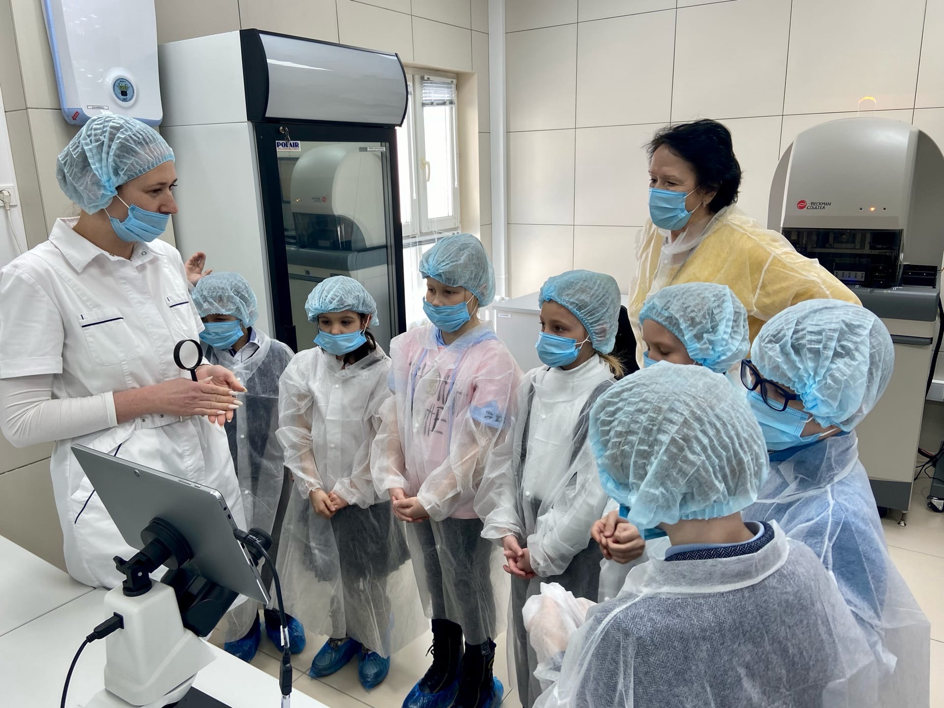 На базе окружного Центра профессиональной патологии сотрудники клинической лаборатории провели ознакомительную экскурсию для воспитанников детской образовательной студии «ПРОдвижение».Облачившись в белые халаты, ребята посетили кабинеты клинико-диагностической лаборатории, познакомились с микроскопом и узнали, как выглядят микробы, которые живут внутри человека и в окружающей среде.