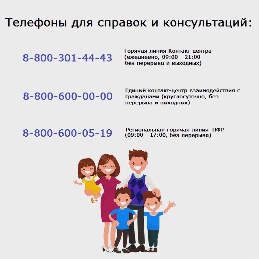 Региональная горячая линия ПФР – 8-800-600-05-19 (09:00 – 17:00, без перерыва).