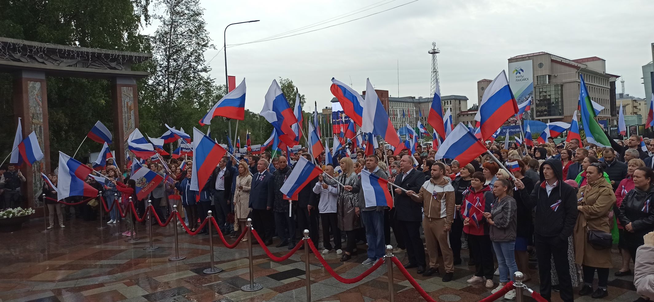 Лейтмотивом праздника, состоявшегося в городском парке столицы Югры, выступал бело-сине-красный триколор, который был повсюду – в праздничном убранстве, красочных бутоньерках горожан и развевающихся стягах в их руках. Летний дождь не стал помехой праздничному концерту «Под флагом моей страны», который объединил более двух тысяч хантымансийцев. Со сцены прозвучали слова в поддержку России, которые вызвали отклик в сердцах и душах всех присутствующих.
