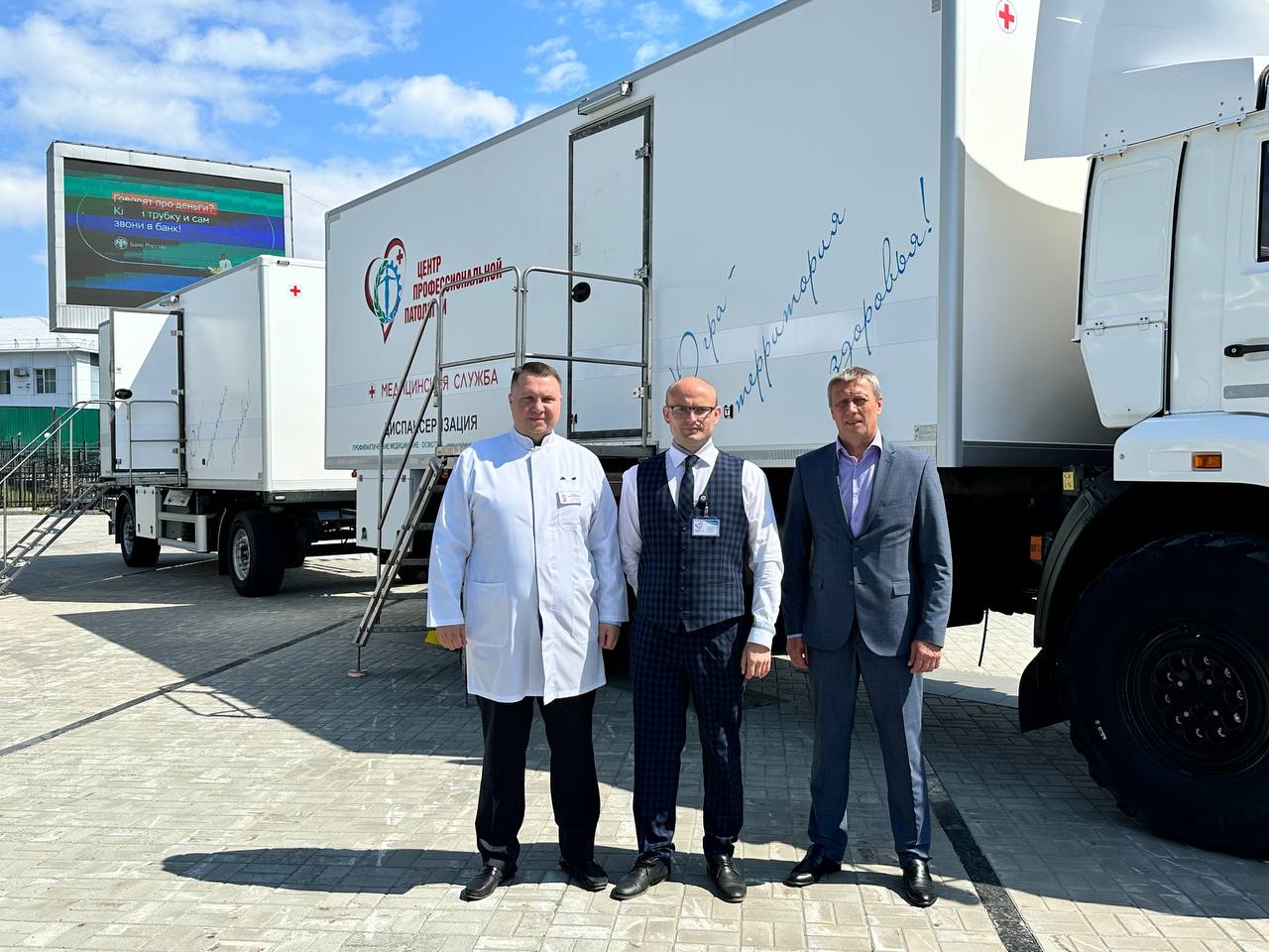 В числе медицинской техники были представлены три передвижных лечебно-диагностических комплекса Центра профессиональной патологии.