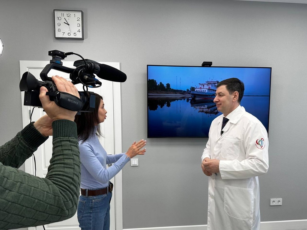 В рамках подготовки информационного сюжета для программы «Сегодня» съемочная группа телеканала «НТВ» посетила Югру с целью освещения хода строительства новой плавучей поликлиники для нужд автономного округа – первого речного теплохода в России, который изначально спроектирован как специализированное медицинское судно.
