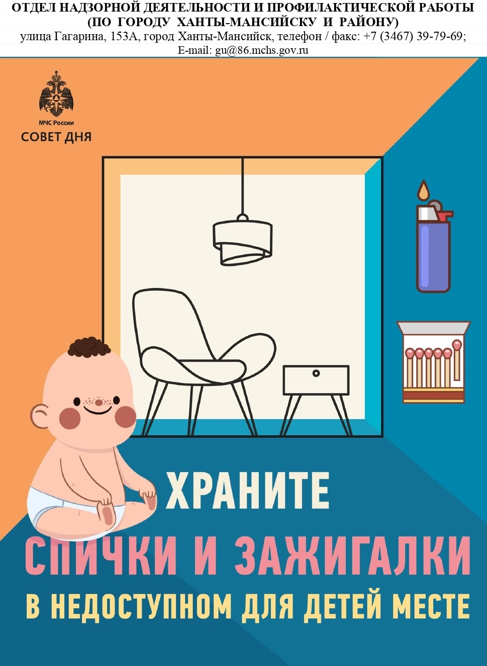 Помните, что дети могут случайно устроить пожар.