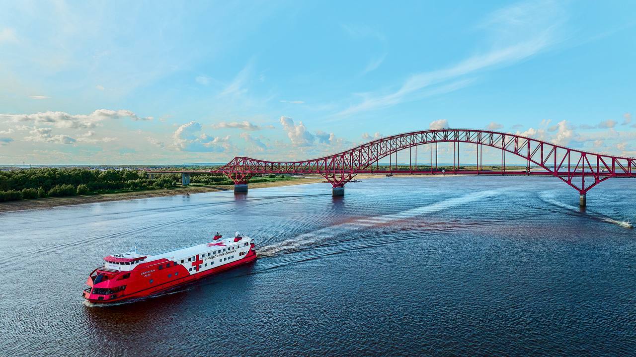 Сейчас плавполиклиника отправилась в испытательный рейс по маршруту Ханты-Мансийск – Сургут – Ханты-Мансийск.