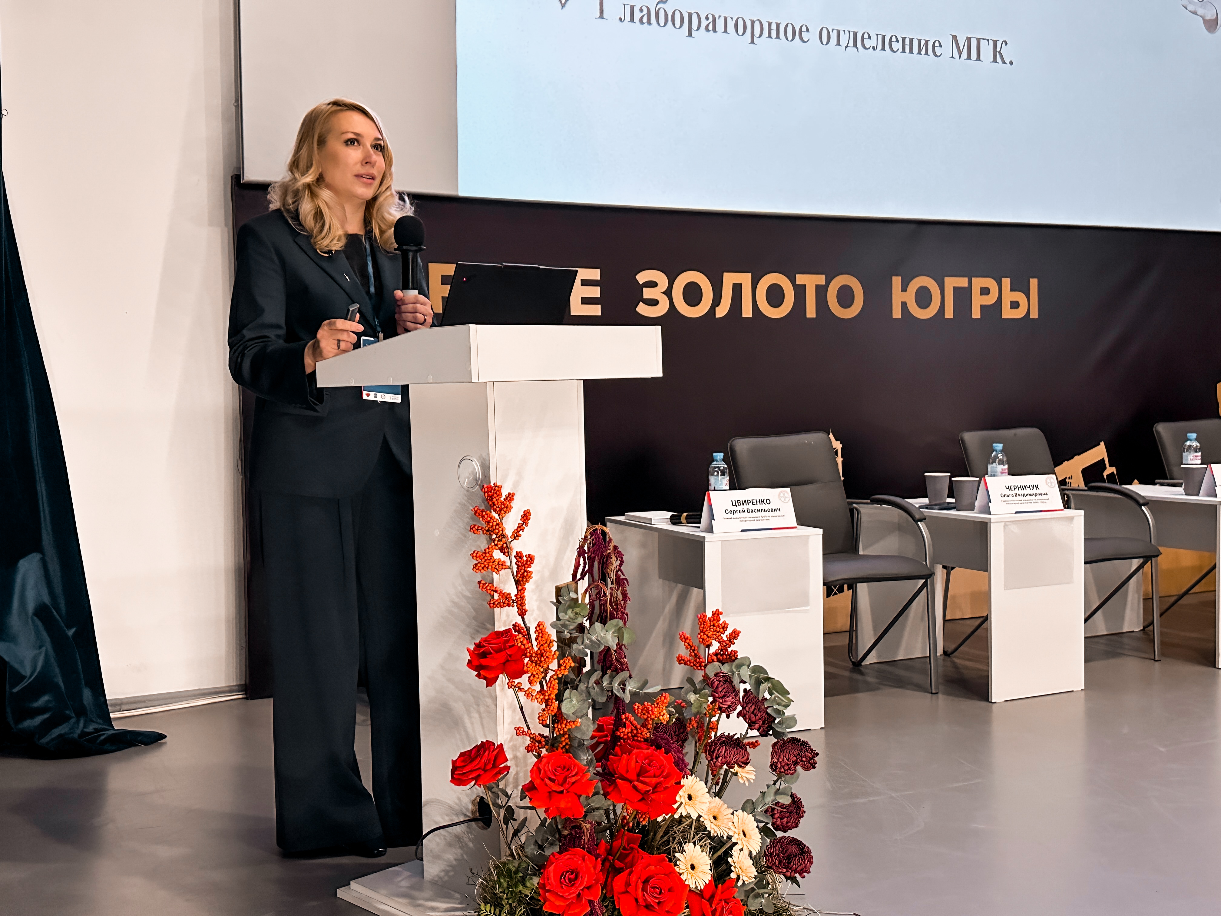 Наш центр представили Ольга Владимировна Черничук — главный внештатный специалист по клинической лабораторной диагностике ХМАО‑Югры и заведующий центром лабораторной диагностики АУ «Югорский центр профессиональной патологии», а также Климова Юлия Васильевна - главный внештатный специалист по клинической микробиологии и антимикробной резистентности, врач-бактериолог центра лабораторной диагностики АУ «Югорский центр профессиональной патологии».