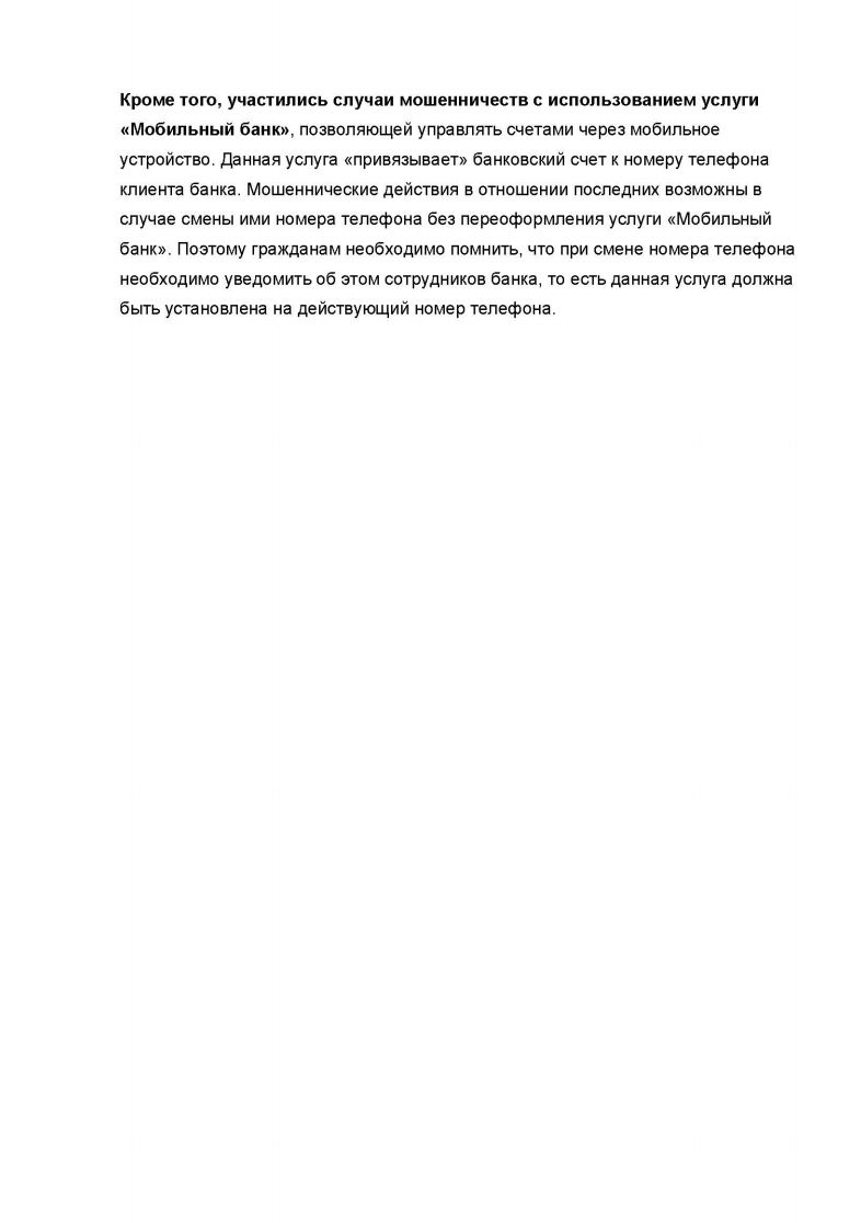 Неустановленное лицо, по телефону представившись сотрудников службы безопасности банка, под предлогом пресечения несанкционированного списания денежных средств с банковского счета, убедило потерпевшую оформить в банке кредиты и перевести данные средства на «резервные» счета. |