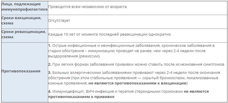 Против дифтерии, коклюша, столбняка.
